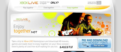 There is nothing more frustrating than opening up the box of your new Xbox 360 console (which was sold to you at full price, no discount offered for the lack of a major feature, but batteries are included) and seeing Xbox Live! blazeoned across the leaflets, the user guide, and the games cases. What kind of sick, sadistic joke is that? It's like paying for a 3 course meal and being denied the sweets. If you're like me, I only eat the starter and main as it's the done thing, I'm actually there for the desert. Depriving me of the sugary stuff only makes the whole meal a waste of time! (I haven't seen my feet for three years - throw me a friggin' bone here) It's around this time that we move from being a duped consumer to a criminal. Thanks Microsoft. Until recently they have ignored us as we provide false information and buy points and gold subscriptions so we don't have to play with ourselves (!) but that trend is changing. It started with IP blocking rated downloadable content but has progressed to banning accounts. These are worrying times.Cindy White, Xbox 360 Group Manager: "Xbox 360 is a true next-generation digital entertainment experience, that with or without Live the experiences can be enjoyed."